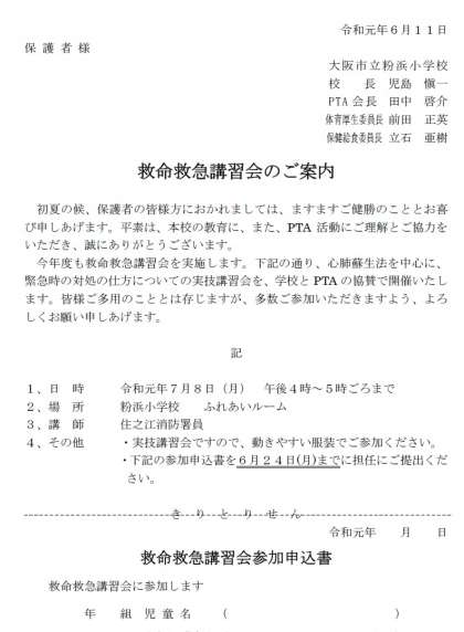 申し込み受け付けは土曜授業の6月15日(土)です。