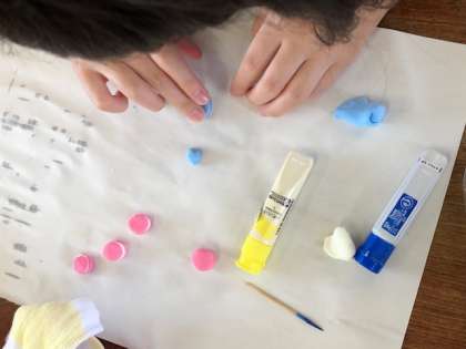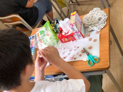 4年生は、図画工作の学習で「お菓子の家」をつくっています。