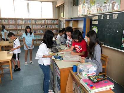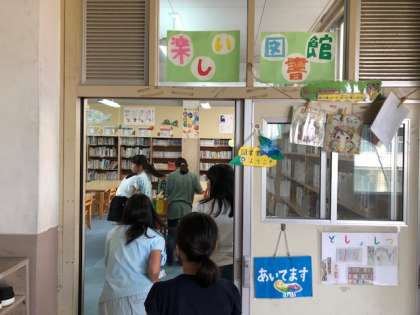 本を借りる子どもたちでにぎわっていました。