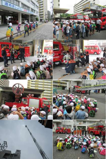 日本国内に数台しかない大型送風機の大迫力の風を体験したり、高さ40mのはしご車の様子を見学したりして、楽しい社会見学となりました。