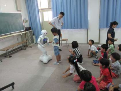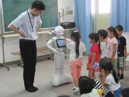 1年生は、人型ロボット・ペッパー君と一緒に学習しました。