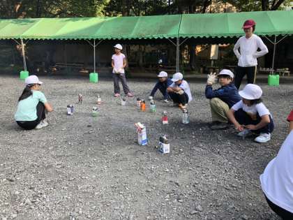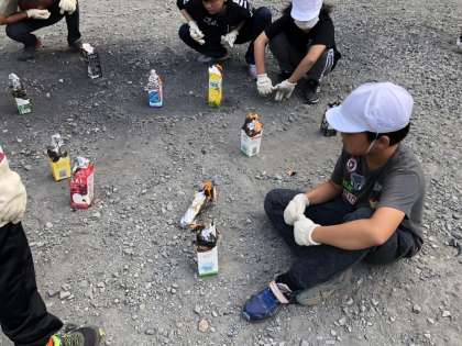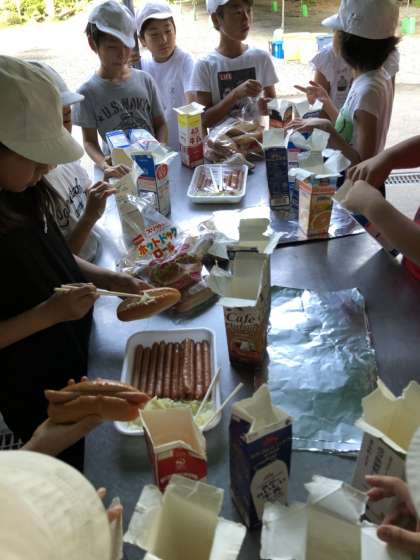 材料をアルミホイルで包んで牛乳パックに火をつけて完成です。