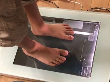 一人ずつ素足でスキャナーの上に静かに立ち、足の裏側から写真を撮り測定するという方法で行いました。測定した写真は、一人ずつ返却されます。
