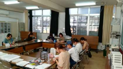 9月9日(月)10時〜会議室にて第2回ベルマーク活動をしました。13名の方が参加してベルマーク回収、整理、一部集計し、17,751点分のベルマークを発送しました。