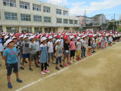 児童集会では、運動会の歌の練習をしました。