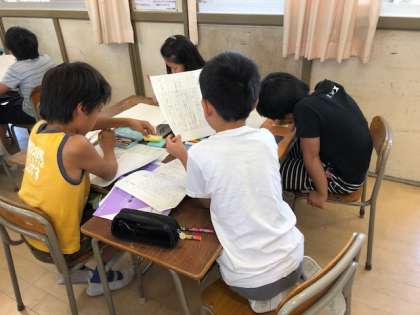 今日は、「始め」「なか」「終わり」で書いた自分の組み立てメモを、グループで発表し合いました。グループのメンバーは、発表を聞いて、いいところを付箋に書いて発表者に渡しました。