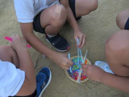 1年生は、いろいろな材料を使ってシャボン玉を作りました。
