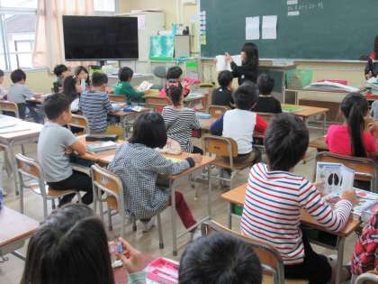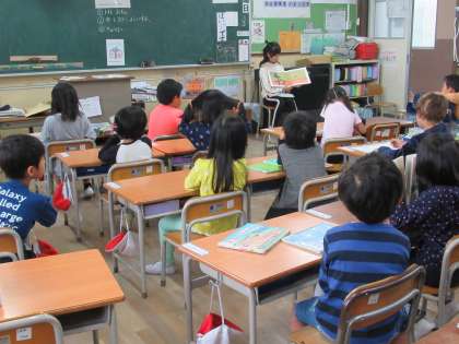 1年生では、図書委員会の児童が絵本の読み聞かせをしました。