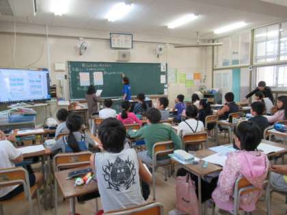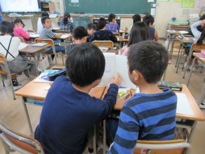 4年生の算数の様子です。ノートに書いた自分の考え方を友だちに伝えたり、発表したりしました。