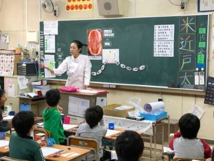 2年生は、歯科衛生士さんに正しい歯みがきの仕方について、教えていただきました。