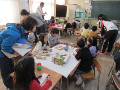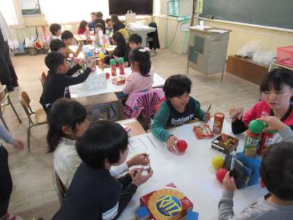 子どもたちは、箱をなかま分けし、班ごとにまとめた意見を発表しました。