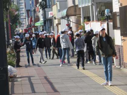 本日、朝会の後、4年生以上は地域に出て清掃活動をしました。
