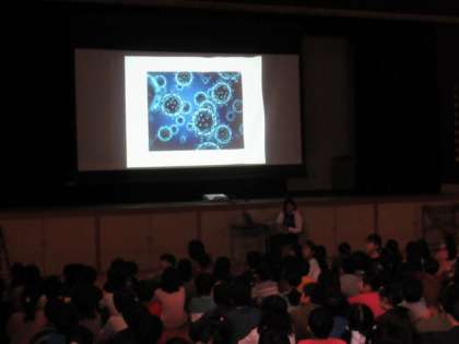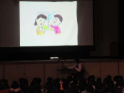 12月12日(木)に健康委員会による健康集会を開いて、これから迎える冬の季節に向けて、風邪を予防する方法などを発表しました。