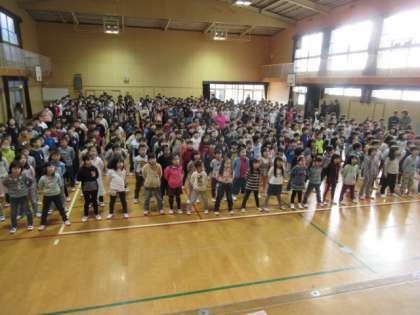元気な校歌を歌う声が講堂中に響き渡りました。