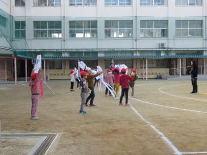 1年生は、生活科で「たこ」を作りました。