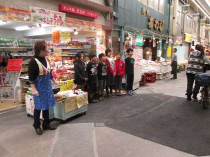 今日(11月7日)の5時間目は5年生がキャリア教育の一環として、粉浜商店街で「お店体験」をしました。