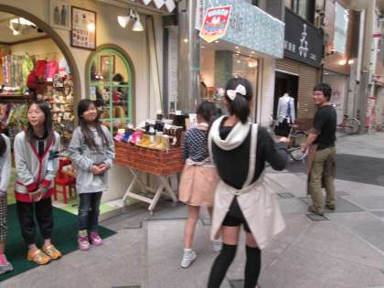 お店の前でお客の呼び込みをしたり、商品の販売体験をしたり、商品の整理をしたり、出前に出かけたり、調理の体験をしたり…と、お店ごとにいろいろな体験をさせてもらいました。