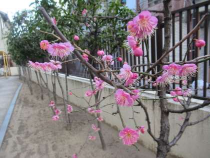正門横に梅の木があります。とってもきれいに咲いていました。