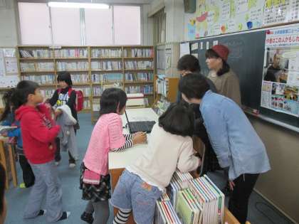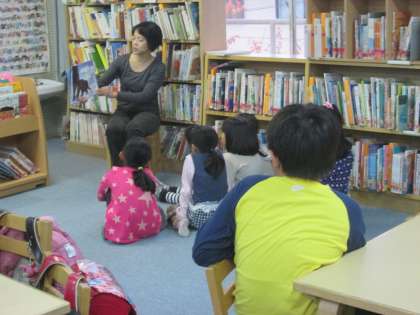 いつも、お話会で本の読み聞かせをしていただいているお話ベルの方が、子どもたちのために図書室の放課後開放をしてくれました。