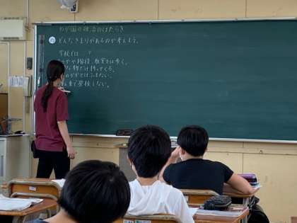 5月28日(木)2時間目、6年2組は社会科で「わが国の政治のはたらき」の導入部分を学習していました。学校や学校外にどんなきまりがあるかを想起し、すべてのきまりは日本国憲法をもとにつくられていることを学びました。これから日本国憲法や政治についての学習が始まるようです。