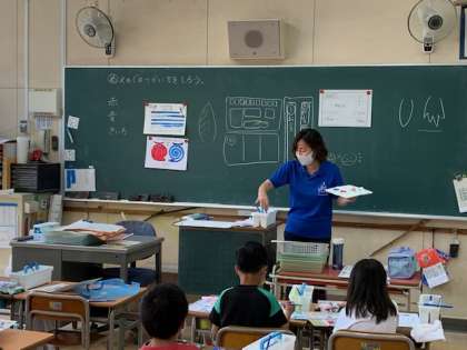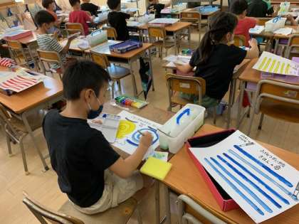 6月8日(月)B組1時間目、2年1組では、図画工作で絵の具の使い方を学習していました。絵の具の道具の置き方や筆の使い方など細かいところまで鶴田先生が指導されていました。先生にお話を聞くと水の加減が難しく、何度も練習して慣れるしかないとおっしゃっていました。2年2組の教室を覗くと同じように絵の具の使い方を学習していました。