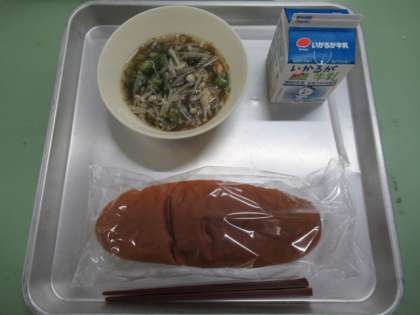 献立:牛乳、黒糖パン、もずくとオクラのとろり汁