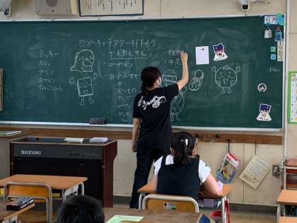 6月12日(金)A組1時間目、4年1組は図工で、自分キャラクターをつくっていました。山本先生が書き方のポイントをお話しされていると、子ども達はどんなキャラクターを作ろうかなと、想像をふくらませている顔をしていました。