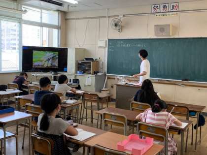 6月12日(金)A組1時間目、5年2組は社会で沖縄の農業について学習していました。教室のモニターに映し出されていたのはサトウキビのようです。ここからどんな授業が展開されたのでしょう?