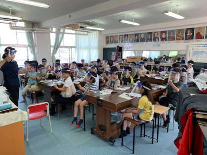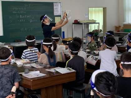 6月16日(火)3時間目、3年2組は音楽を学習していました。子どもたちはフェースシールドをしていました。村上先生からリコーダーの手入れの仕方を教えていただきました。
