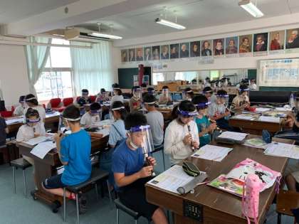 7月1日(水)3時間目、音楽室から聞いたことのある心がゆったりとする曲が聞こえてきました。おもわず音楽室に入ると、6年2組が「木星」を先生のピアノ伴奏に合わせてリコーダーで演奏していました。素晴らしい演奏でした。