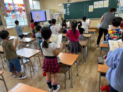 7月6日(月)5時間目、1年1組は国語で「とんこととん」というお話の音読をしていました。「とんこととん」とリズムよく声に出せたかな?