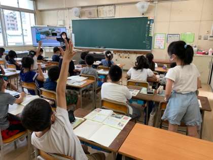 7月6日(月)5時間目、4年1組は社会で「住みよいくらしとごみ」の学習をしていました。ごみ収集車の様子を動画で見て、気付いたことを発表していました。