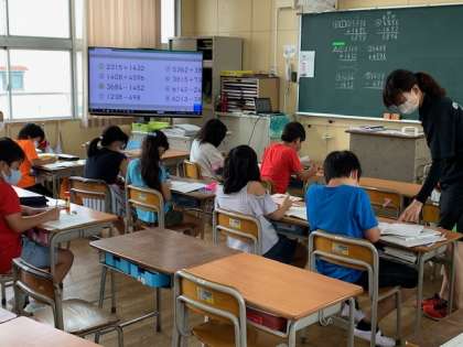 7月7日(火)1時間目、3年1組は算数を習熟度別で学習していました。少人数でよりていねいに指導するために分割しています。3年2組も習熟度別2分割で学習します。