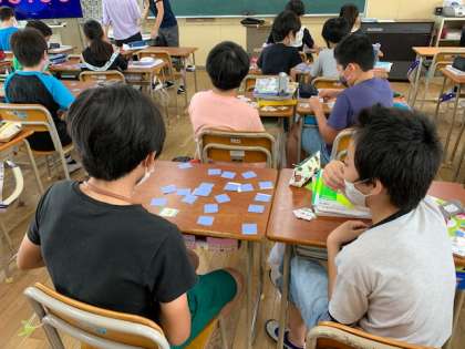 7月10日(金)朝の英語タイムで「季節の行事」の絵をつかって神経衰弱をしていました。そろったら英語で言うゲームです。ペアで楽しんでいました。