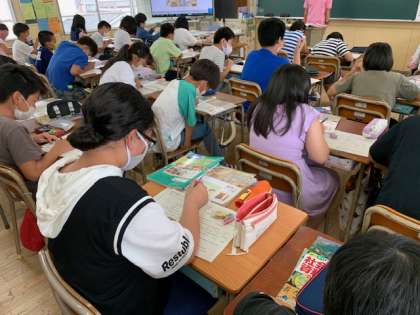 7月13日(月)3時間目、6年1組も2組も社会科で古墳時代について学習していました。1組は教科書や資料集からノートにまとめていました。2組は、まとめたことをもとに発表していました。