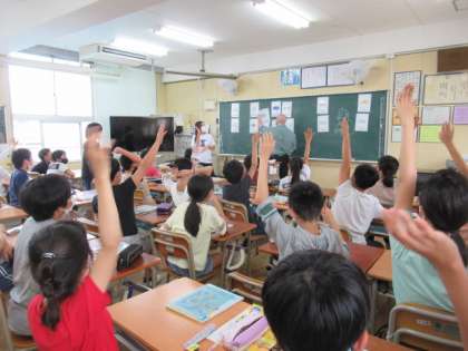 子どもたちは、積極的に手を挙げて答えていましたよ!