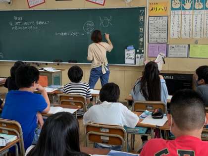 7月15日(水)1時間目、6年1組は理科で「池や川などでも食物れんさが見られるのだろうか」というめあてで学習していました。