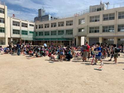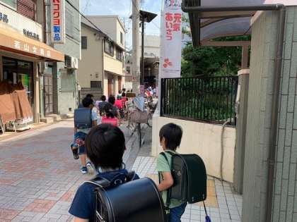 7月15日(水)6時間目、地区会が行われました。各地区にわかれた後、地区長や副地区長を決めていました。その後、地区で安全な登下校について話し合ったり、地区で危険な場所はないか話し合ったりしました。最後に運動場に集合し、地区ごとに集団下校しました。6年生が1年生と手をつなぎ、5年生が2年生の手をつなぎ歩いています。6年生と5年生の間に3・4年生が並び安全に気を付けて下校しました。