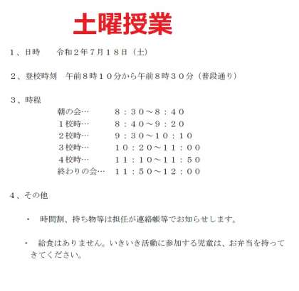 今回の土曜授業は、臨時休業で授業がなくなった分を補うため実施します。