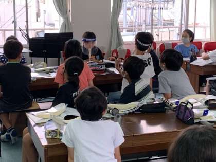 7月17日(金)2時間目、5年2組は音楽でリコーダーのテストをしていました。「小さな約束」という曲の一部を演奏していました。テストを受けている人の方をみんな向いてしっかり聞いていました。