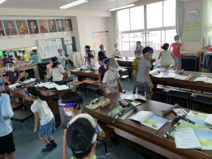 7月20日(月)6時間目、4年2組は音楽でした。先生がピアノで弾くメロディーやリズムに合わせて体を動かしていました。リズムが変わると動きが変わり楽しそうでした。