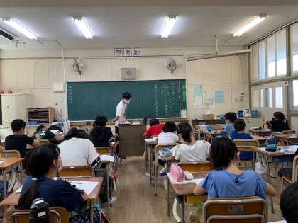 7月28日(火)1時間目、5年2組は国語で「文の組み立てをとらえよう」という学習をしました。2つの文章を「原因・理由」「逆接」「仮定」「逆接の仮定」でつなぐと、どのような言葉を使うとよいかを考えました。