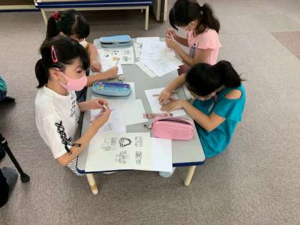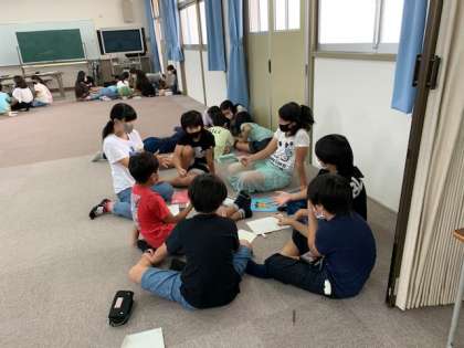 8月4日(火)1時間目、5年生はふれあいルームで林間学習に向け係ごとに分かれて活動していました。