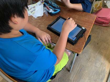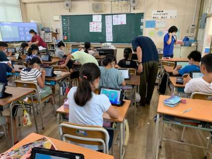 8月7日(金)2時間目、5年1組はプログラミングの学習をしていました。各自がコマンドを組み合わせてゲームをつくっているようです。