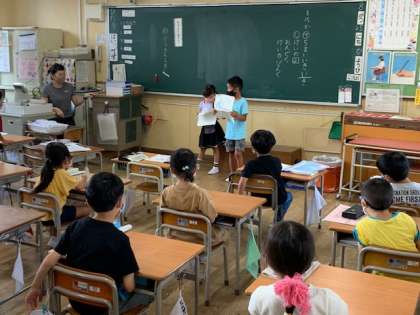 8月25日(火)1時間目、1年1組は夏休みに書いた絵日記を発表していました。どんな楽しいことがあったのかな?みんなしっかり聞いて質問していました。