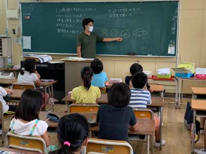 8月25日(火)1時間目、3年2組は、2学期に頑張ることを話し合っているようです。黒板には