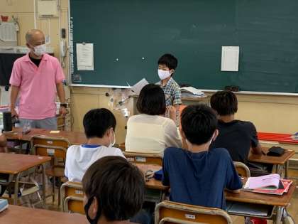 8月25日(火)1時間目、6年1組は夏休みの自由研究を発表していました。発表しているのは「さしすせその実験です」どんな実験だろうと思って聞いていますと、料理に使う調味料の順番のようです。お家の人に協力していただいたのだろうなと思いました。内容をくわしく知りたい方は6年1組に掲示されていると思いますので、ぜひ見てください。その他の自由研究も楽しみですね。