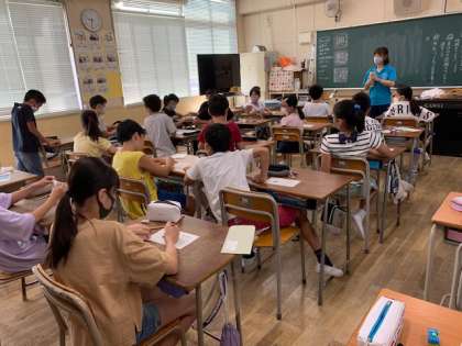 8月25日(火)1時間目、5年1組は「夏休み思い出ビンゴ」をしていました。友だちが発表したものが自分にあれば〇をつけていきます。特別な思い出のある人は、なかなかビンゴにならないかもしれませんね。