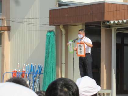 校長先生からは、コロナと熱中症対策を同時にしなければならないことは難しいけれど、共通することがある。それは、一人ひとりが自分の体の抵抗力を高めることが大切。そのために「早寝・早起き・朝ごはん」を心がけましょうとお話がありました。