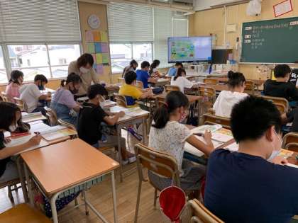 8月28日(金)5時間目、6年1組は、算数で「条件に合う場合を求める方法を考えよう」というめあてで学習していました。樹形図をかいたり、ノートに図や表をかいたりしながら考えていました。